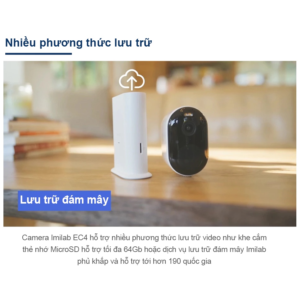 👉Camera Xiaomi Imilab EC4 được trang bị một hộp sạc đi kèm với dung lượng 5200 mAh. Hộp sạc được tích hợp loa, nút báo thức và các cổng kết nối camera, nguồn, Ethernet…một khe cắm thẻ nhớ MicriSD ( hỗ trợ thẻ nhớ 64 Gb).