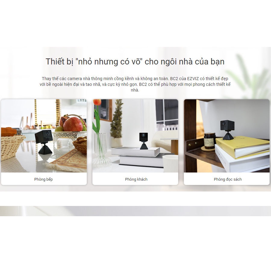 - Camera wifi mini ezviz CS-BC2 được tích hợp pin sạc 2.000 mAh, có thể hoạt động lên đến 50 ngày khi sạc đầy. Không cần lắp đặt gần ổ cắm điện - thậm chí bạn còn có thể đem theo khi đi trên đường! Trong tình huống khẩn cấp hoặc mất điện, khi phần lớn các camera gia đình đều ngừng hoạt động, BC2 vẫn sẽ tiếp tục hoạt động và ghi lại các sự kiện trong bộ nhớ cục bộ.