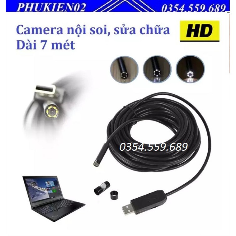 Điện Thoại & Phụ Kiện > Phụ kiện > Đèn USB & Đèn điện thoại || Camera nội soi HD chống nước có đèn LED - Dài 7MCòn hàng