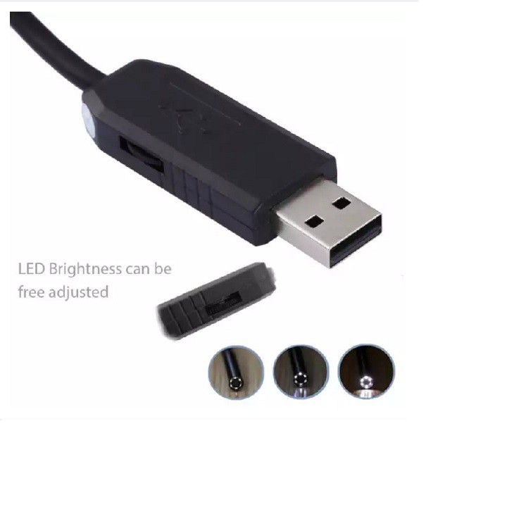 Camera Nội Soi Cho Máy Tính (7mm x 7m) - Hàng Nhập KhẩuTrong quá trình dùng thiết bị, chúng ta có thể điều chỉnh độ sáng của 6 bóng đèn ở đầu camera bằng cách xoay bánh xe để tăng giảm độ sáng phù hợp ở những nơi ánh sáng yếu hoặc tối.
