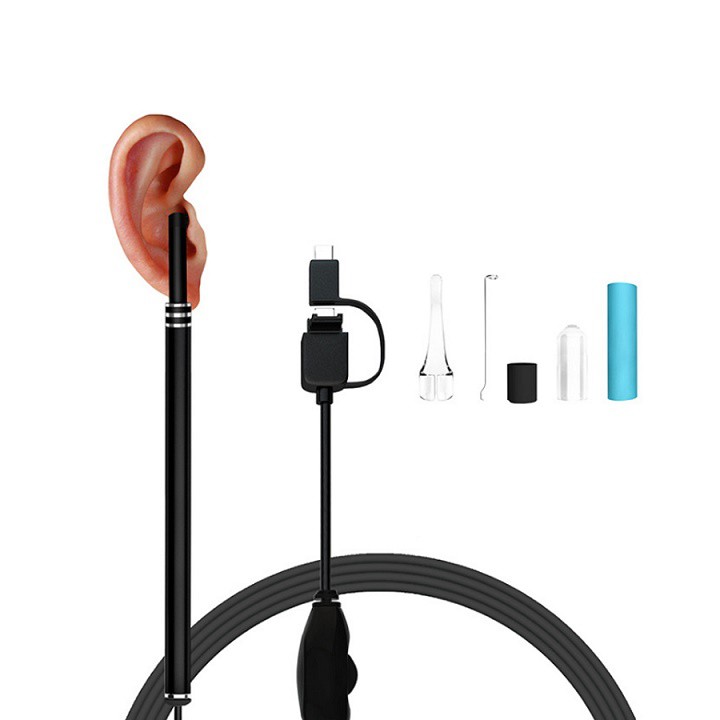 Camera nội soi lấy ráy tai có đèn led, Kèm Đầu Lấy Ráy Tai Cao Cấp, sử dụng cho điện thoại và laptop