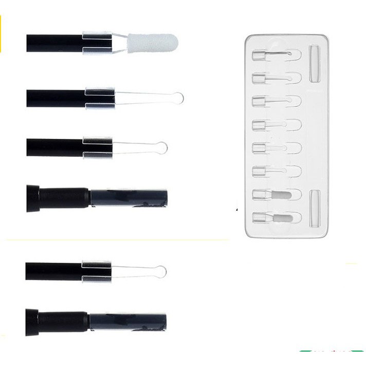 Phụ kiện đi kèm: nhiều đầu lấy ráy tai bằng nhựa trong suốt