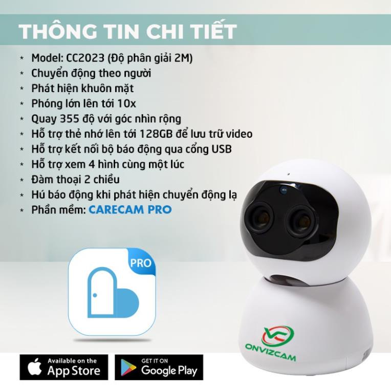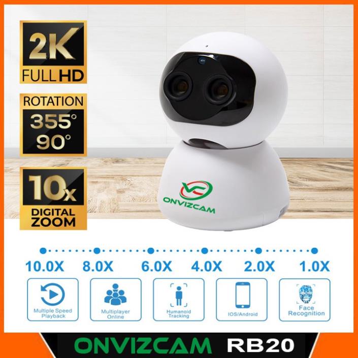 Siêu phẩm ONVIZCAM RB20 chính hãng bảo hành 12 tháng.Camera ONVIZCAM RB20 - tích hợp 2 mắt camera Độ phân giải full HD 1080P- Quay 355° - Zoom xa 10x
