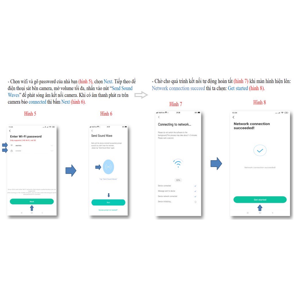 Các thiết bị chứa trong hộp camera :1 camera P4, 1 adaptor 5V-1A, 1 dây Micro USB port 2.5m ,bộ tắc kê & vít & gá lắp gắn trần nhà. Sách hướng dẫn.