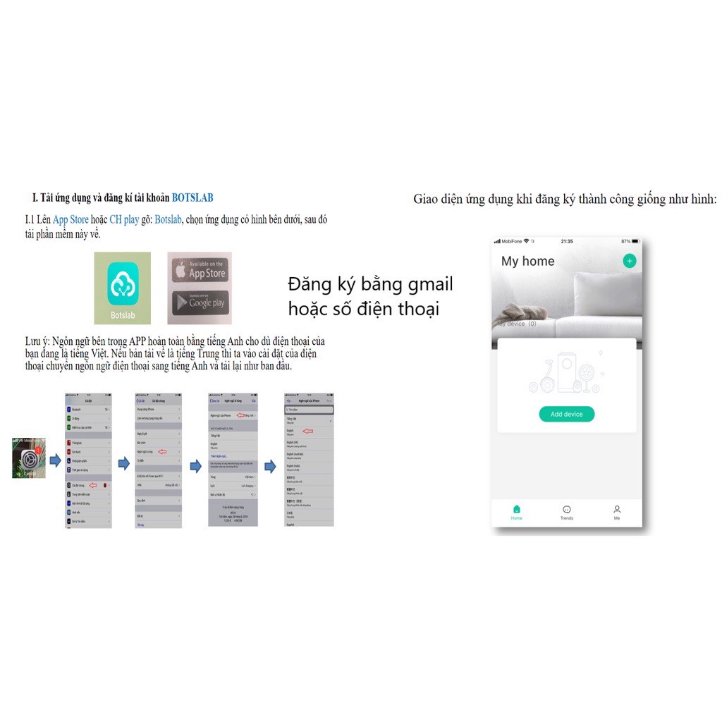 -Hệ điều hành: APP Botslab trên Android / IOS