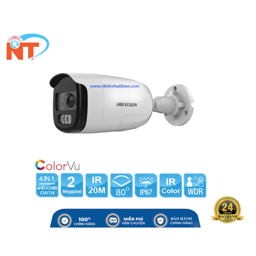 CAMERA QUAN SÁT ANALOG HIKVISION DS-2CE12DFT-PIRXOF, 2.0 MEGAPIXEL, CÓ MÀU BAN ĐÊM, TÍCH HỢP ĐÈN CÒI