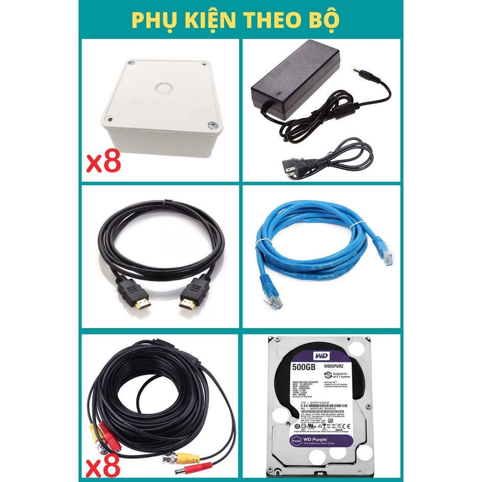 Trọn bộ 8 mắt Camera quan sát Full HD 1080P và đầy đủ phụ kiện lắp đặt