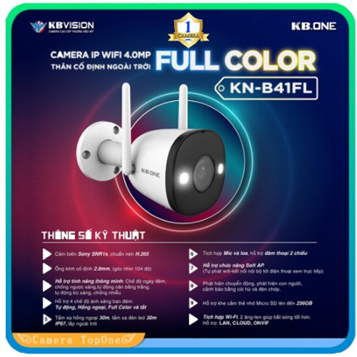 CAMERA QUAN SÁT IP WIFI KBONE KN-B41FL1 ĐỘ PHÂN GIẢI 4.0 MEGAPIXEL, FULL COLOR