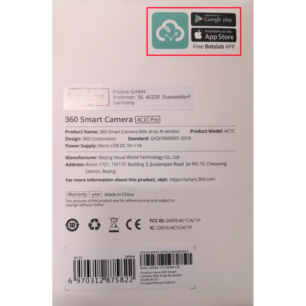 - AC1C Pro: Độ phân giải 2304 * 1296P. Sử dụng App "Botslab"