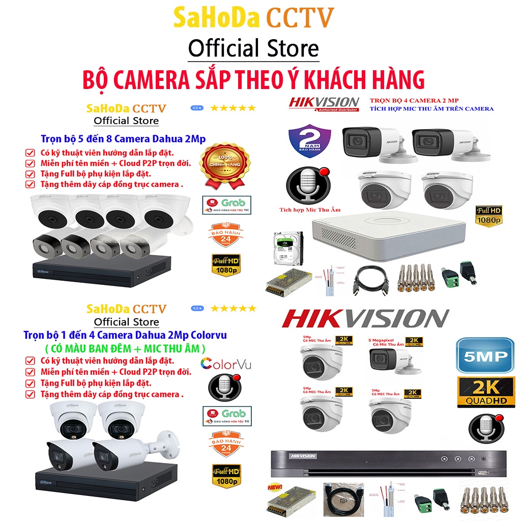 Quý khách vui lòng nhắn tin bộ camera theo nhu cầu để shop đưa giải pháp và chọn bộ camera hợp theo ý khách nhất.Bộ camera sẽ gồm đầy đủ đầu ghi hình, mắt camera, dây cáp đồng trục, hộp kỹ thuật, các loại jack kết nối, bộ nguồn, ổ cứng lưu dữ liệu....