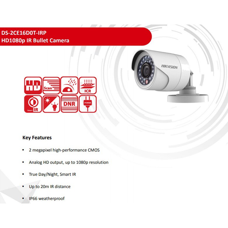 ❌Thông số kĩ thuật của Camera TVI HikVision DS-2CE16D0T-IRP☼Cảm biến 2.0 megapixel Progressive Scan CMOS.