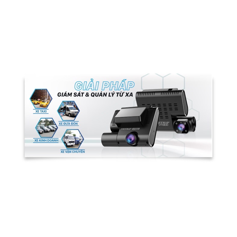 Bộ Vietmap VM300 camera 2 mắt ghi hình trước & trong xe đáp ứng được cho xe 9 chỗ đến 16 chỗ, xe tải, xe container ( Ghi hình được phía trước, ghi hình tài xế và nhìn được cửa lên xuống ).