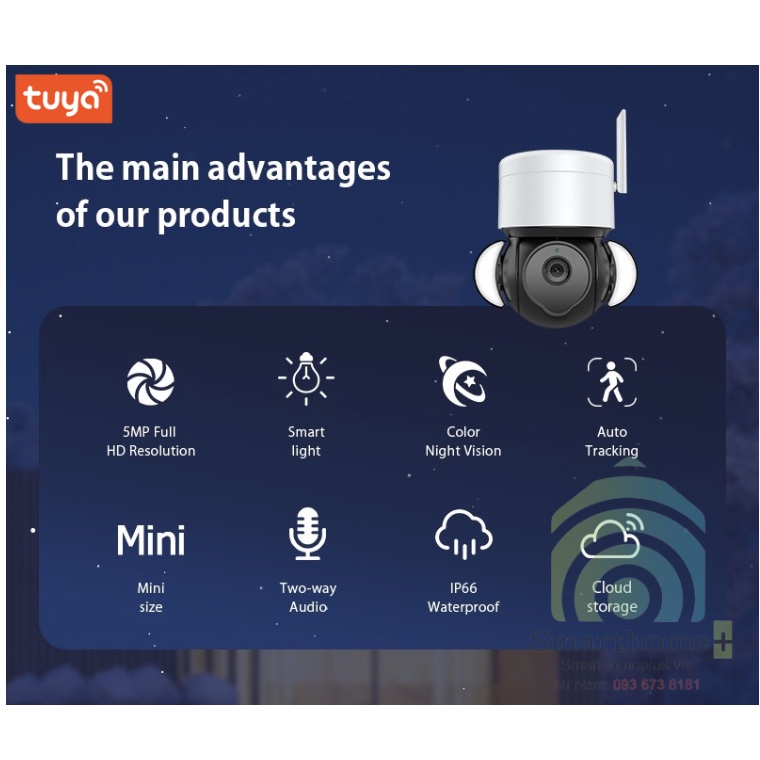 Camera Thông Minh Độ Phân Giải Cao 5M Wifi Tuya SHP-CI17Sản phẩm camera kết hợp với một chiếc đèn pha siêu sáng vô cùng thông minh, giúp bạn dễ dàng quan sát nhà mình mọi lúc mọi nơi thông qua điện thoại di động vô cùng thuận tiện.