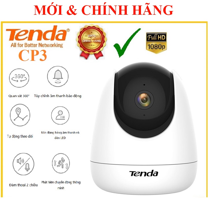 Cameras & Flycam > Camera giám sát > Camera giám sát kết nối internet || [Mã 253ELSALE hoàn 7% đơn 300K] Camera Thông Minh Tenda CP3 Full HD Đàm Thoại 2 Chiều, Phát Hiện Chuyển Động, Xoay 360Còn hàng