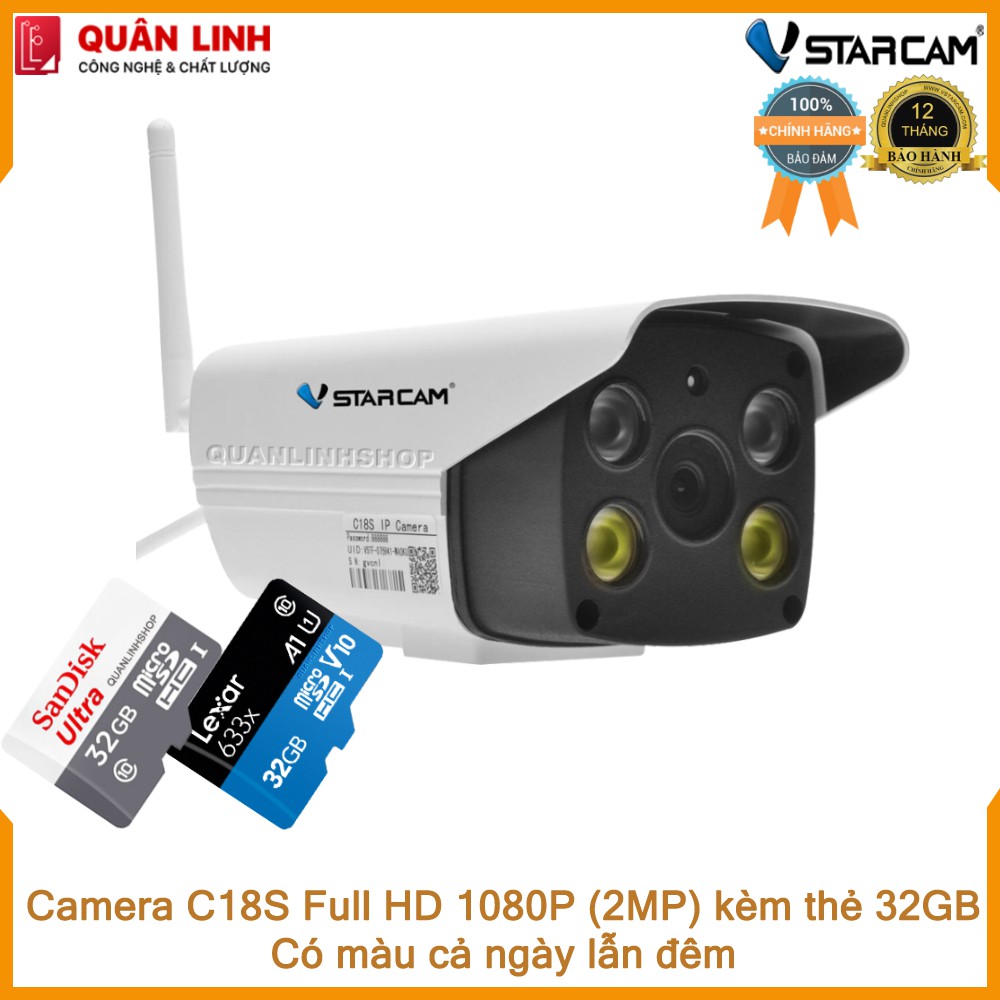 [Mã 263ELHA100K0 hoàn 7% đơn 500K] Camera Vstarcam C18s Full HD 1080P quay đêm có màu kèm thẻ 32GB