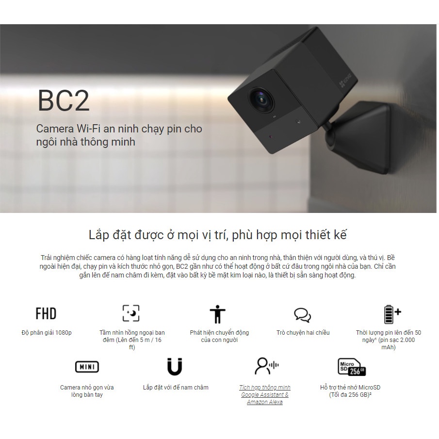 Giới thiệu Camera Wi-Fi EZVIZ BC2 Không Dây, FHD 1080P, Pin Sạc 2000 mAh, Hỗ Trợ Thẻ Nhớ - Hàng Chính Hãng