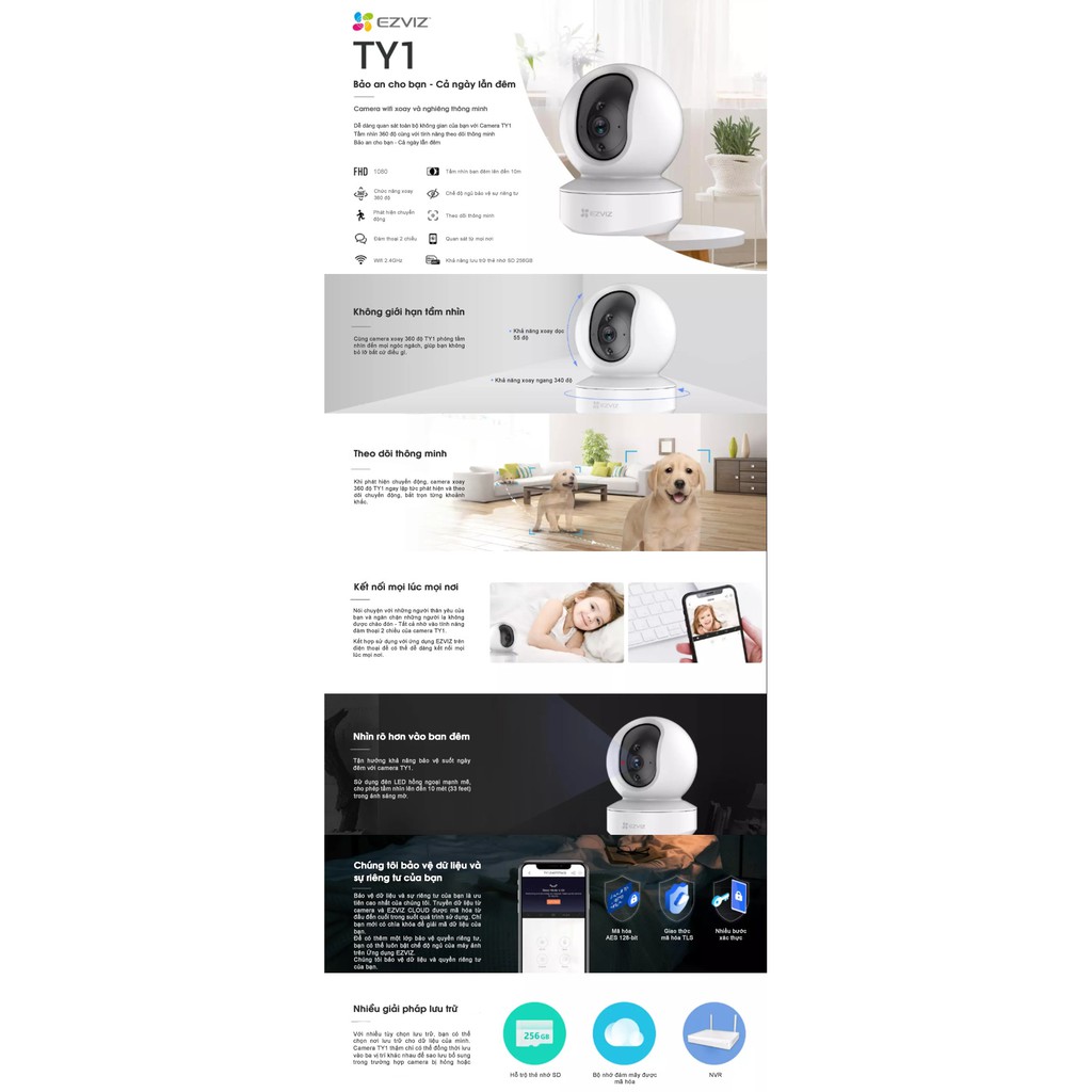 Giới thiệu Camera WI-FI Trong nhà EZVIZ TY1-1080P, Smart IR Quan Sát Ban Đêm 10m, Đàm Thoại 2 Chiều, theo Chuyển Động Thông Minh