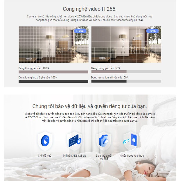 - Công nghệ chuẩn nén video H.265 giúp bạn nâng cao chất lượng video mà chỉ dùng một nửa băng thông và một nửa dung lượng lưu trữ