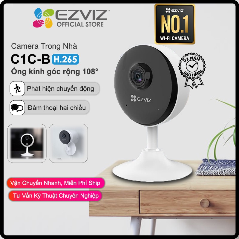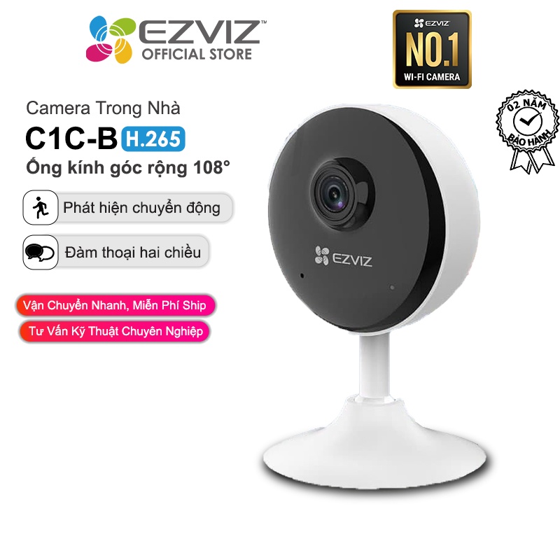 Camera WI-FI Trong nhà EZVIZ C1C-B 1080p, Đàm Thoại 2 Chiều, Công Nghệ Video H.265, Cảnh Báo Âm Thanh, Thiết Kế Nhỏ Gọn