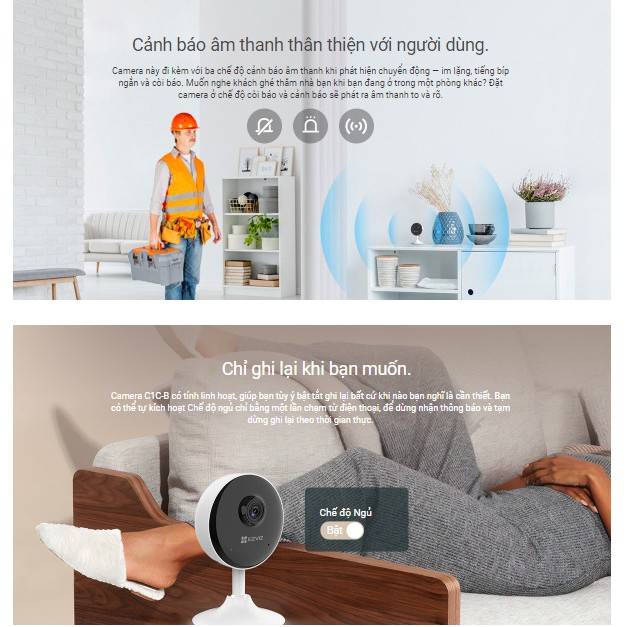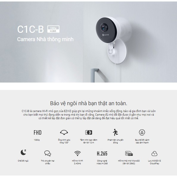 Giới thiệu Camera WI-FI Trong nhà EZVIZ C1C-B 1080p, Đàm Thoại 2 Chiều, Công Nghệ Video H.265, Cảnh Báo Âm Thanh, Thiết Kế Nhỏ Gọn
