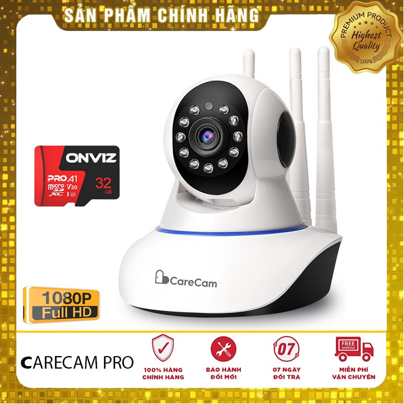 Cameras & Flycam > Camera giám sát > Camera giám sát kết nối internet || Camera Wifi 3 Râu Onvizcam V3- CARECAM xoay 360 độ 2.0MPX / Camera kèm thẻ 32G - Hàng chính hãngCòn hàng