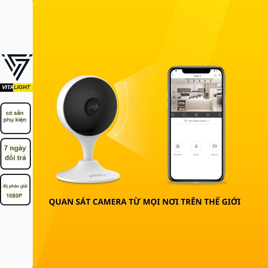 Camera wifi Cue2 báo động về điện thoại, tích hợp AI nhận diện người, độ phân giải full Hd, chính hãng imou VITALIGHT