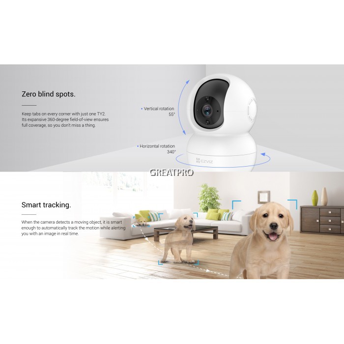 Theo dõi mọi ngóc ngách chỉ với một TY2. Góc quan sát mở rộng 360 độ đảm bảo bao quát tối đa, bạn sẽ không bỏ sót bất cứ chi tiết nào. Xoay dọc 55°Xoay ngang 340°