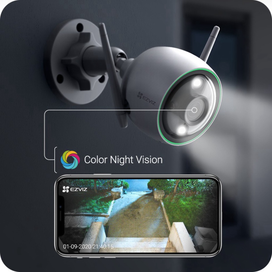 Camera ngoài trời ezviz C3N 2MP 1080p - quay đêm có màu, chống nước IP67, thuật toán AI phát hiện người, bảo hành 2 năm