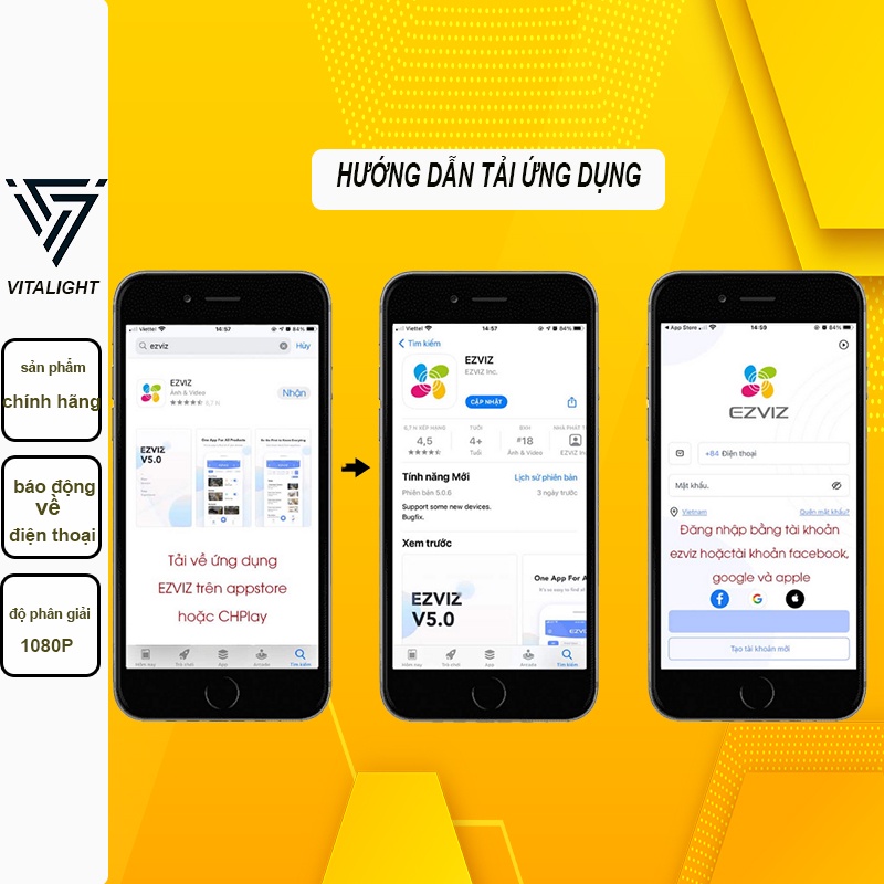 Giới thiệu Camera wifi EZVIZ C6N cảnh báo về điện thoại EZVIZ C6N có loa mic đàm thoại 2 chiều VITALIGHT