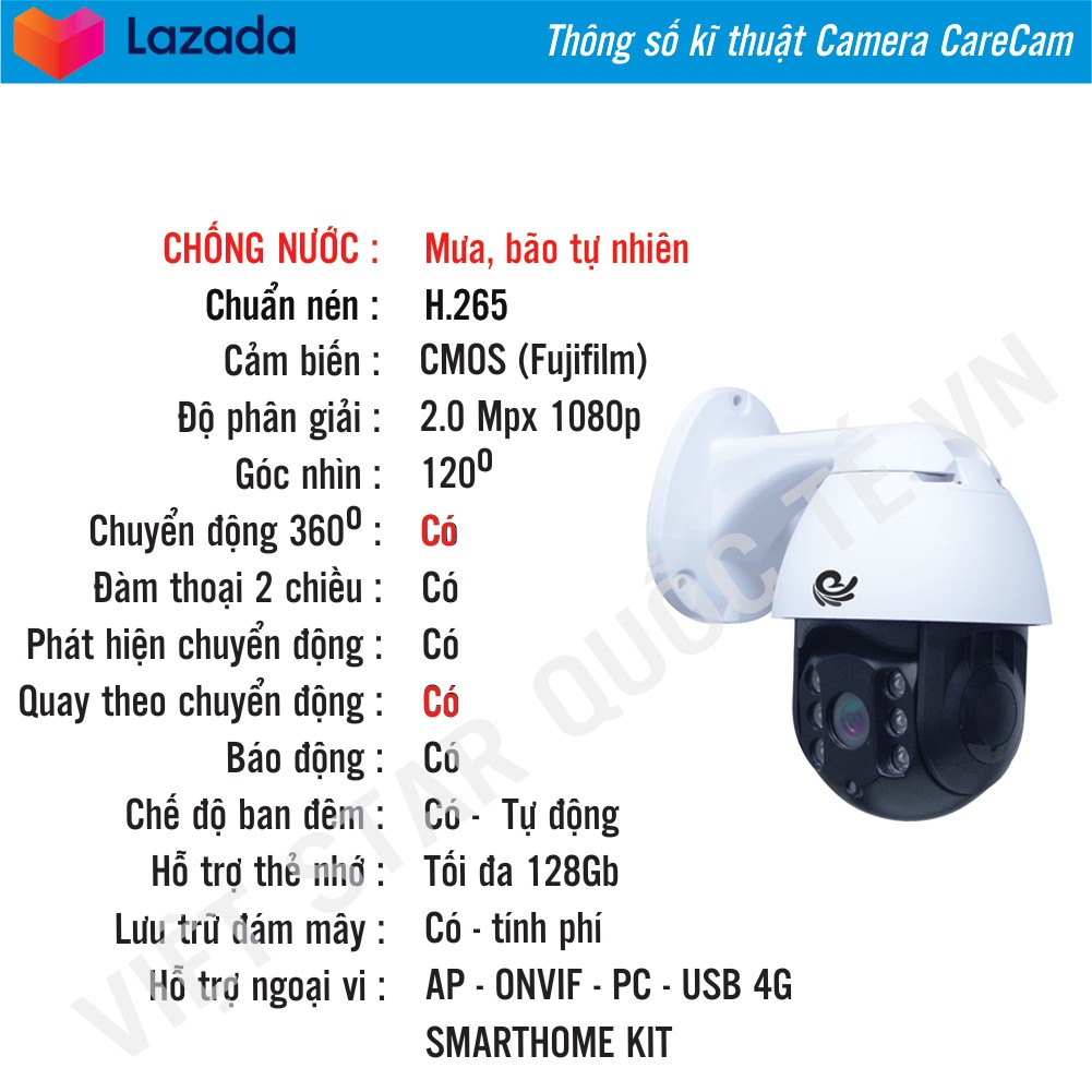 THÔNG SỐ KỸ THUẬT CỦA CAMERA GIÁM SÁT CARE SMART CAMERA C2000
