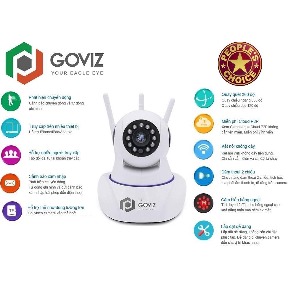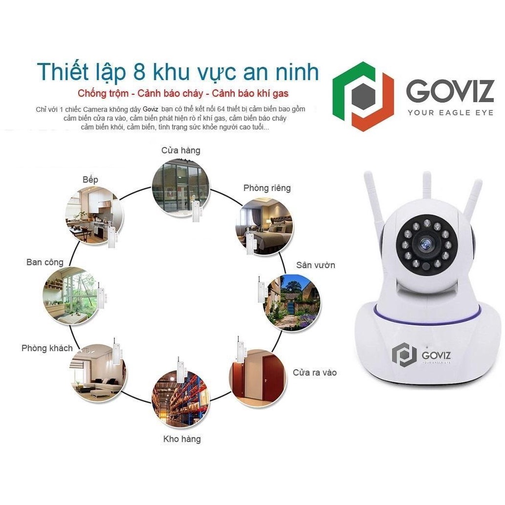Camera wifi GOVIZ 3 Râu 3.0Mpx Full HD Đa chức năng , đàm thoại , ghi âm , lưu video ,báo động