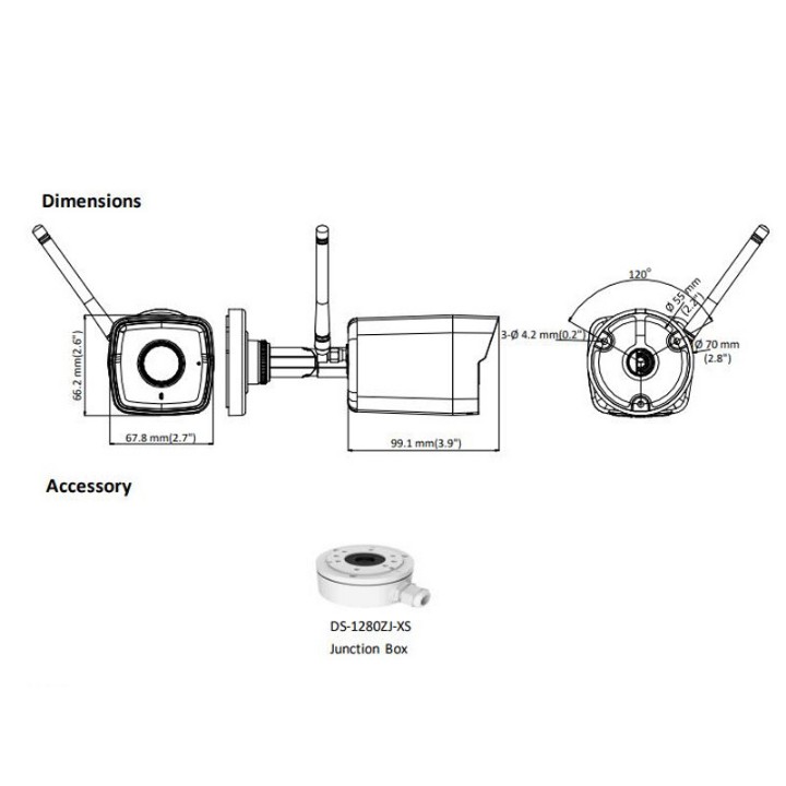 – Camera IP Trụ 2MP WIFI, chuẩn nén H.264+/H.264