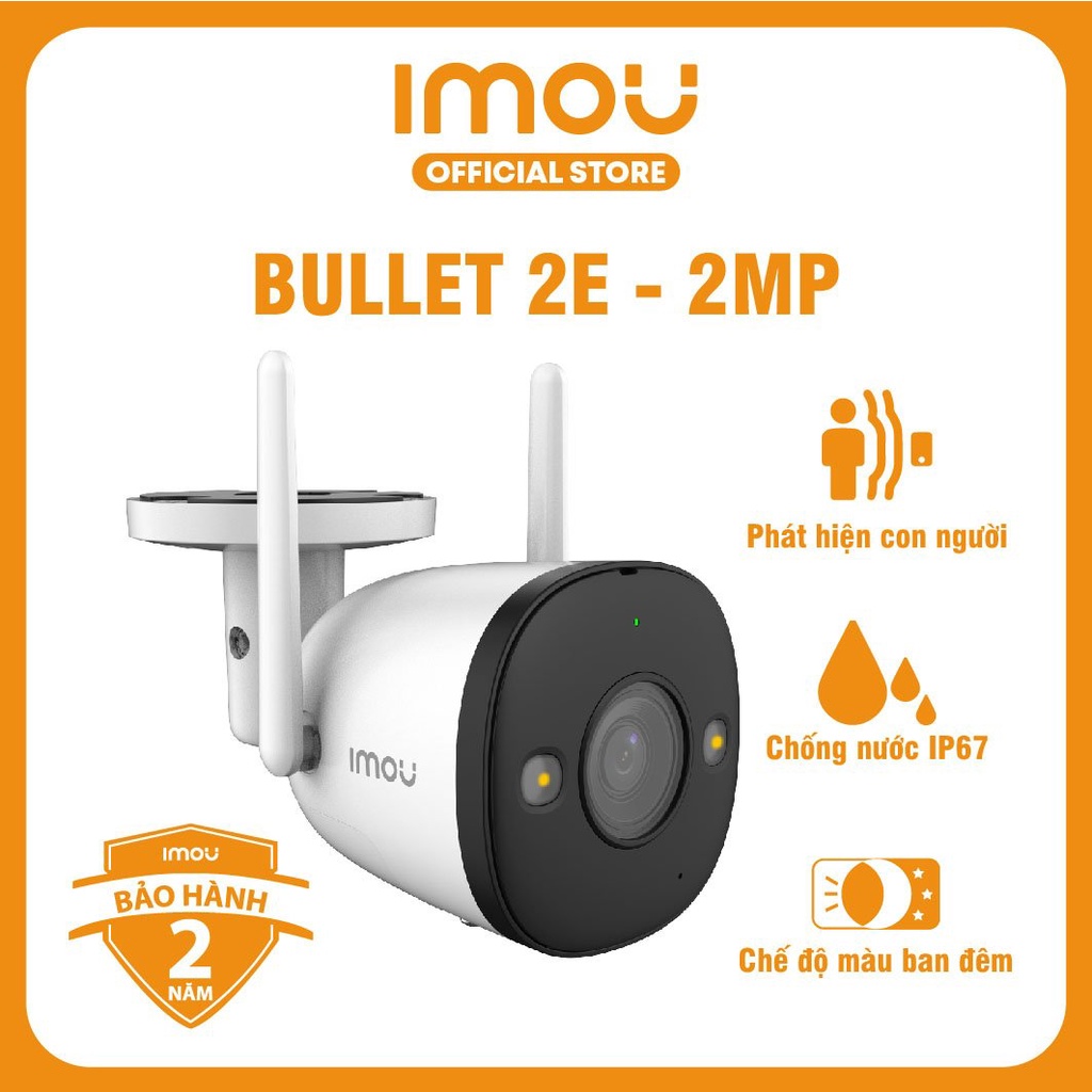 Camera Wifi Imou Bullet 2E (2MP) I Phát hiện con người I Chống nước IP67 | 4 chế độ màu ban đêm I Bảo hành 2 năm