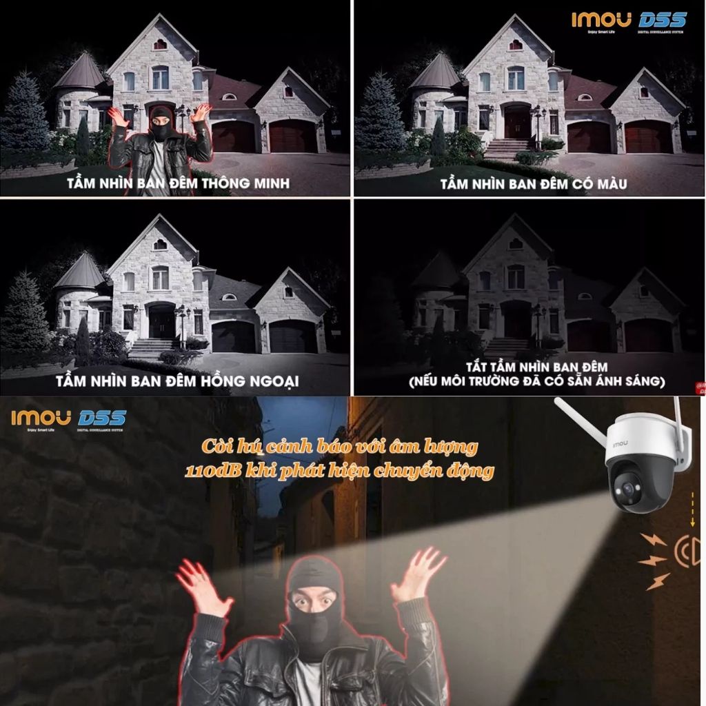 👉 Cảnh báo chủ động: Với tích hợp CÒI HÚ 110DB và ĐÈN SPOTLIGHT TRỢ SÁNG xem đêm có màu , xua đuổi những kẻ lạ mặt khỏi khu vực an ninh mà gia chủ không cần phải xuất hiện.