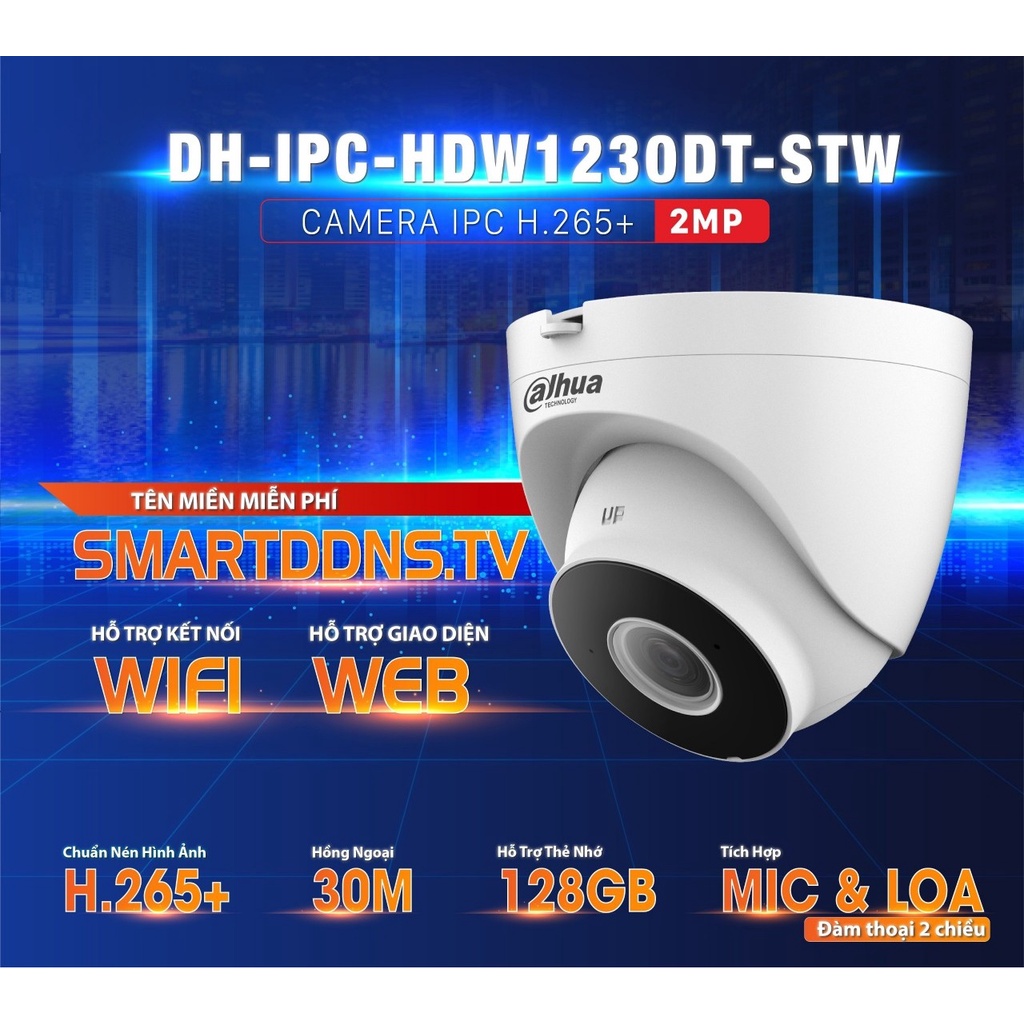 ✅ Camera Wifi Ngoài Trời DAHUA 1230DT Dome Ốp Trần (Độ Nét 2M 1080P, Đàm thoại 2 chiều)