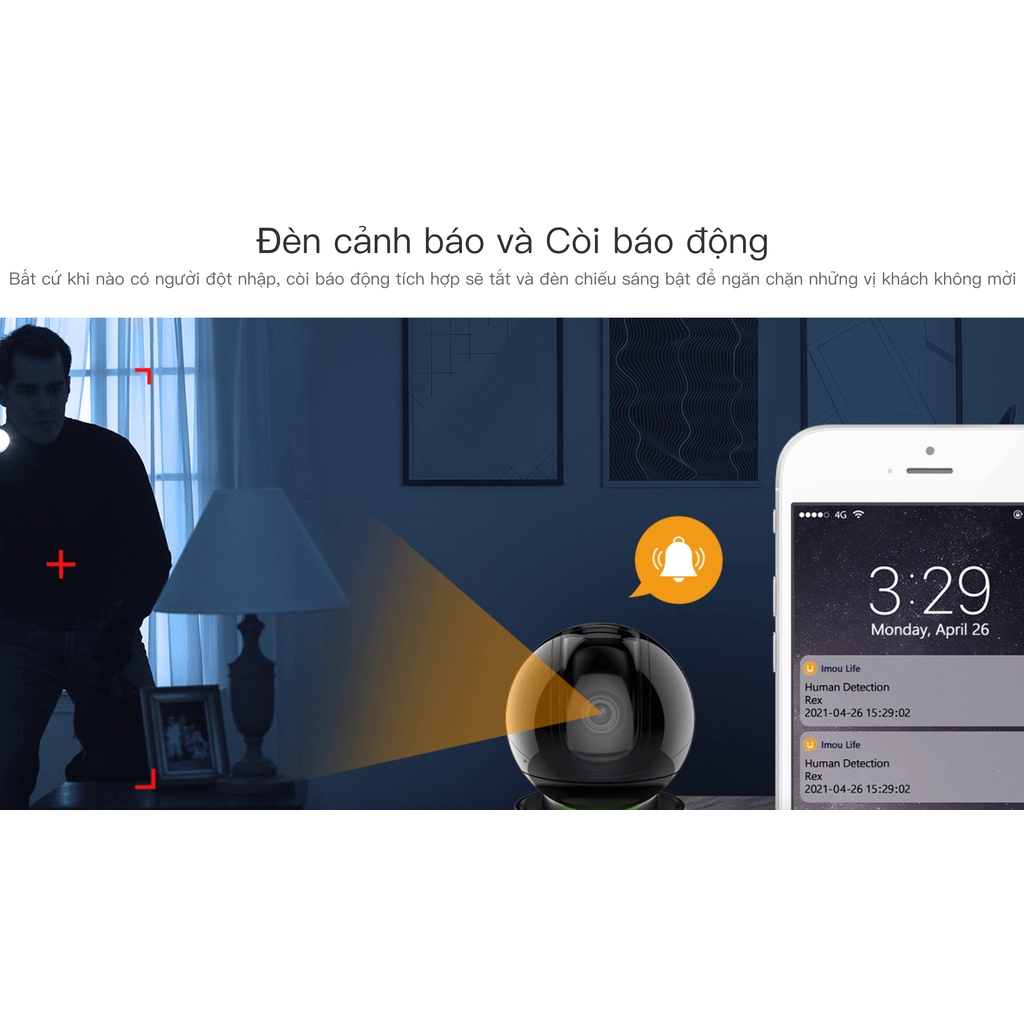 Mỗi khi có người đột nhập, Nếu kích hoạt chế độ báo động trên camera, Camera sẽ bật còi báo động và đèn cảnh báo để răn đe