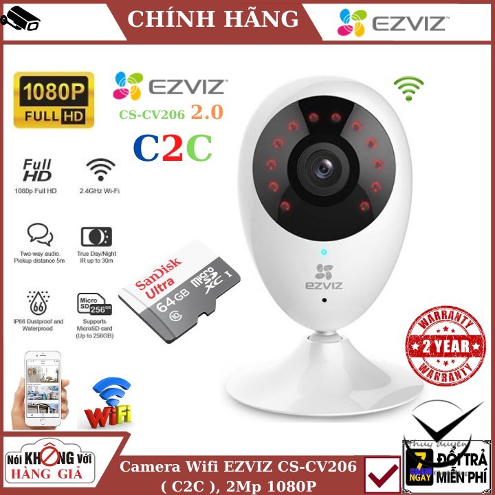 Giới thiệu Camera Wifi IP EZVIZ CS-CV206 ( C2C ), 2Mp 1080P , phát hiện chuyển động , đàm thoại 2 chiều , bảo hành chính hãng