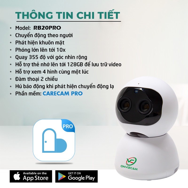 ✅KM TAI SHOP: ĐƠN HÀNG TỪ 50K HỖ TRỢ SHIP 20K/ ĐƠN HÀNG TỪ 300K HỖ TRỢ PHÍ SHIP 70K✅Camera WiFi IP Onvizcam BR20 PRO - Độ phân giải 2.0 MP full HD 1080P- Quay 355° chuyển động theo người- Zoom xa 10x