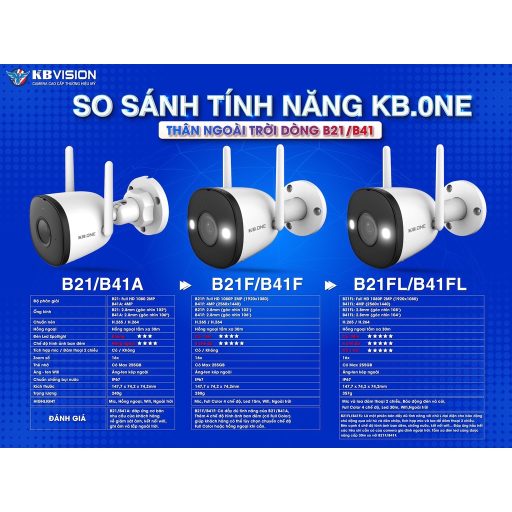 CAMERA WIFI KBONE KN-B41FL FULL COLOR 4.0Mp, KN-B41F 2K Siêu nét, KN B21FL đàm thoại, KN B21F FULL COLOR 2Mp 1080P