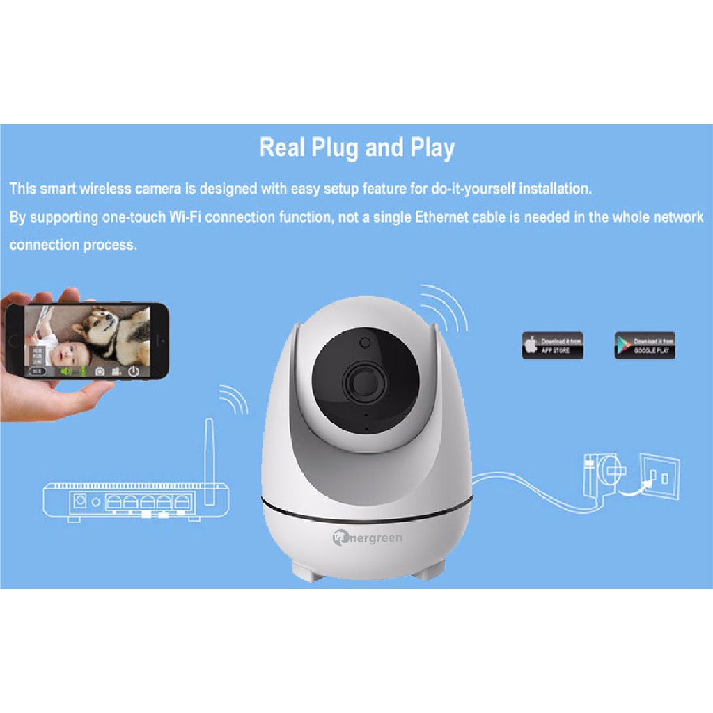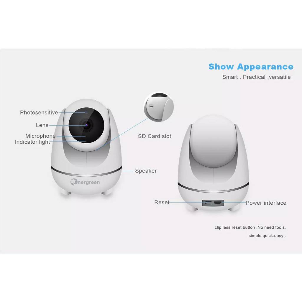 Camera IP thông minh Energreen có khả năng xoay tròn 360 độ. Do đó, camera dễ dàng ghi hình toàn cảnh khu vực mà camera quan sát. Thú vị hơn, người dùng có thể thiết lập chế độ riêng tư cho chiếc camera này. Khi chế độ riêng tư được kích hoạt, camera sẽ tự động cúp ống kính máy quay xuống phía dưới để chuyển sang chế độ off. Nhờ vậy, bạn có thể chủ động kiểm soát hoạt động của camera và chỉ cho camera ghi hình khi cần thiết.Đúng như tên gọi của nó, chiếc camera IP này vô cùng thông minh khi có khả năng phát hiện chuyển động và gửi hình ảnh báo cáo vào ứng dụng của người dùng hoặc gửi dưới dạng video 1 giây. Đặc biệt, camera được trang bị micro và loa kết nối hai chiều giống như chức năng nghe gọi trên điện thoại và bạn hoàn toàn có thể chia sẻ quyền truy cập vào video mà camera quay được với người khác nếu muốn với số lượng không hạn chế.