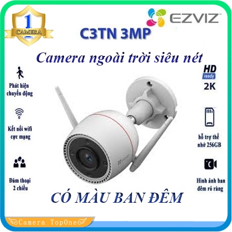 Cameras & Flycam > Camera giám sát > Camera giám sát kết nối internet || Camera Wifi Không Dây IP EZVIZ C3TN 3MP (Color Night Vision)- Camera ngoài trời, màu đêm, đàm thoại 2 chiều, đèn và còiCòn hàng
