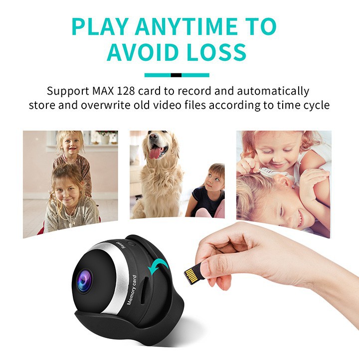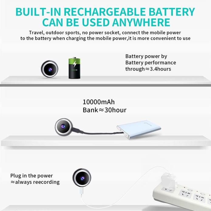 - Các tính năng: Tầm nhìn ban đêm hồng ngoại, Phát hiện chuyển động, Có thể sạc, Kích thước nhỏ