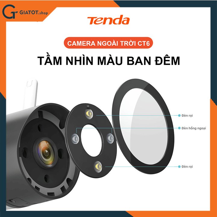 Giới thiệu: Camera wifi ngoài trời 3.0 có màu ban đêm Tenda CT6 - chính hãng