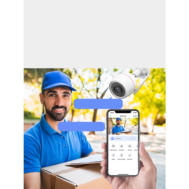 CAMERA sẽ chủ động bảo vệ ngôi nhà của bạn với tính năng phòng thủ chủ động với đèn chớp và còi hú , đồng thời gửi cảnh báo đến người dùng qua APP EZVIZ trên các thiết bị di động