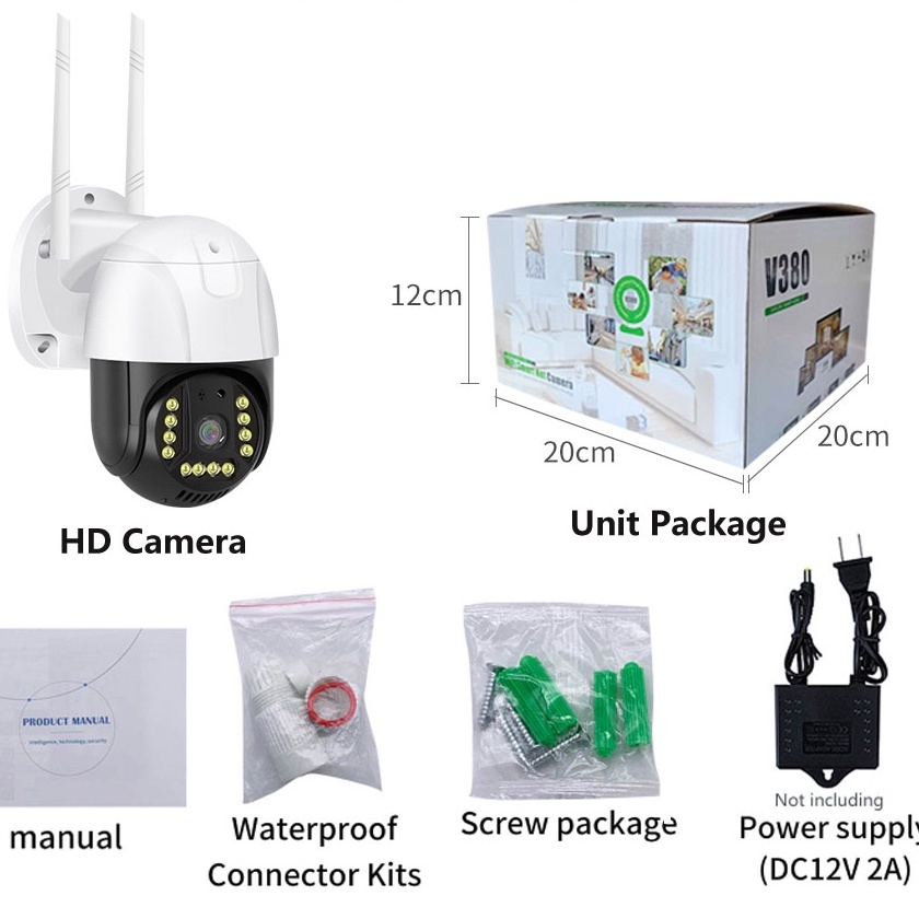 Giới thiệu Camera wifi ngoài trời chống nước V380 PRO 5.0 mpx C15 HD xoay 360 quay đêm có màu, 2K 2560 x 1920p