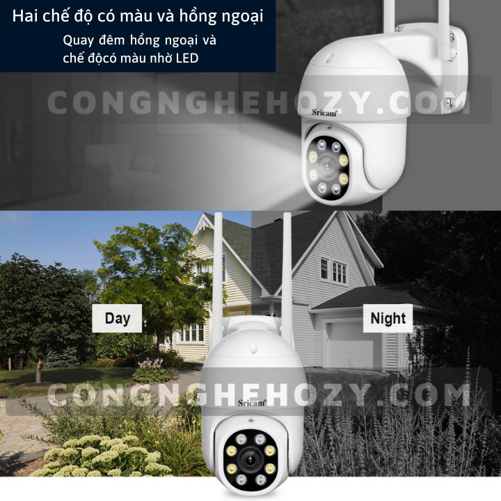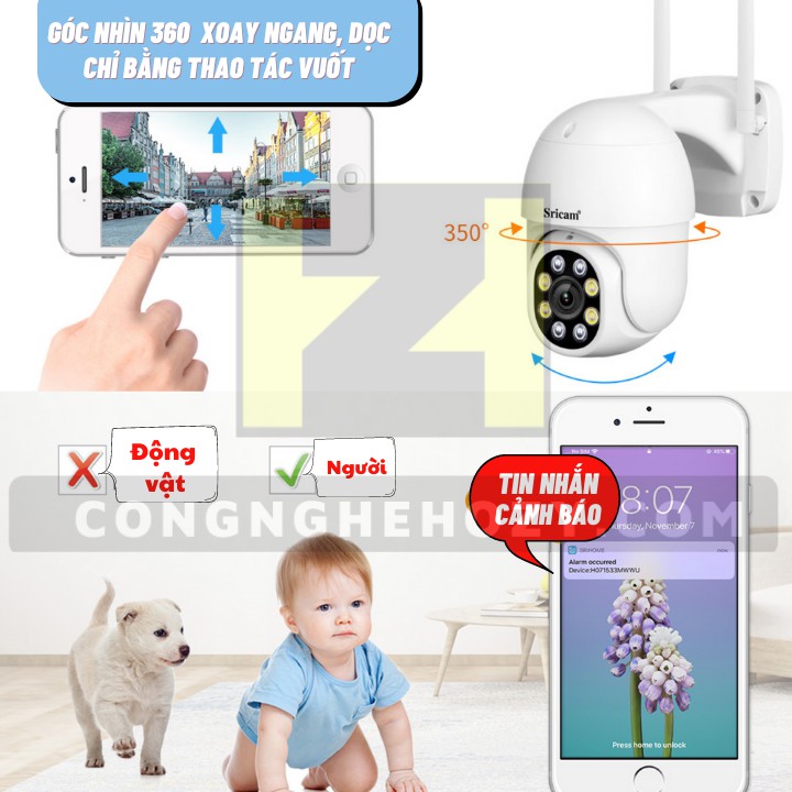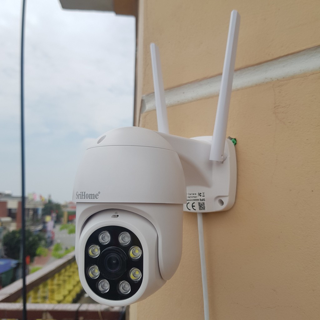 Cameras & Flycam > Camera giám sát > Camera giám sát kết nối internet || Camera wifi ngoài trời chống nước PTZ Srihome FullHD1080 xoay 360 độ có đèn Led quay đêm có màuCòn hàng