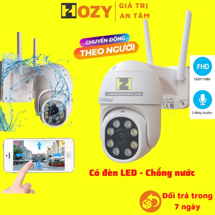 Camera wifi ngoài trời chống nước PTZ Srihome FullHD1080 xoay 360 độ có đèn Led quay đêm có màu