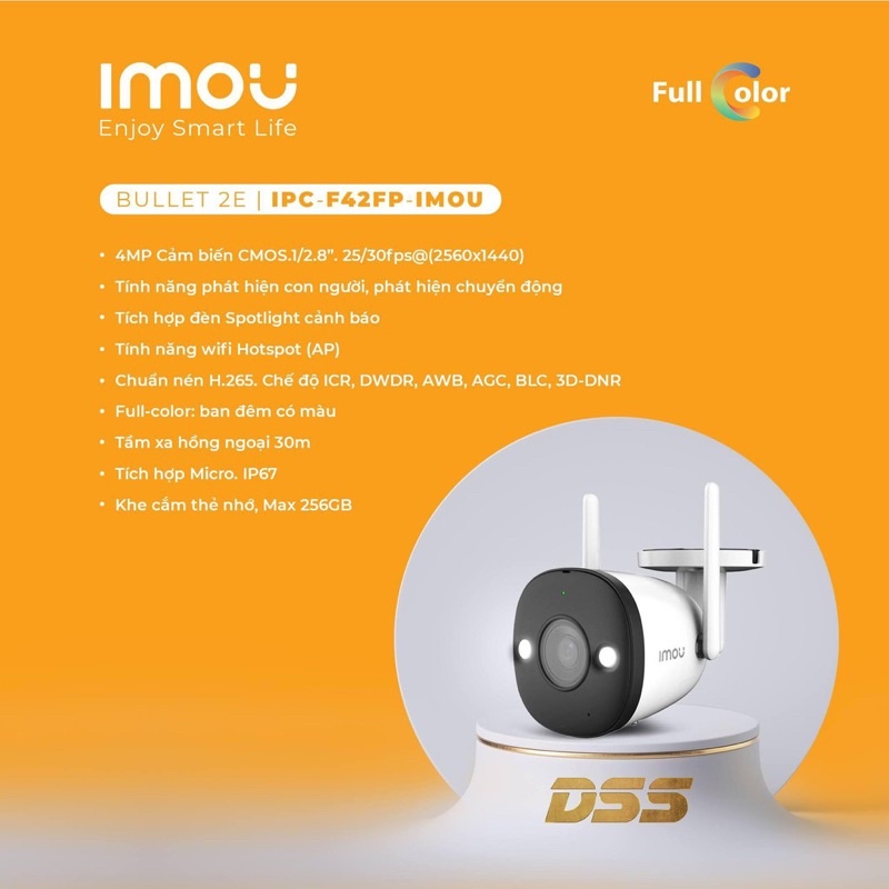 Camera wifi ngoài trời DAHUA IMOU. Bullet 2 4MP IPC-F42FEP/ f42feb chính hãng . đàm thoại 2 chiều. cảnh báo chuyển động
