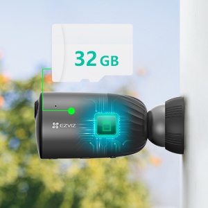 BC1C cũng có thể được kết nối với Tấm pin mặt trời EZVIZ để được cấp điện trực tiếp