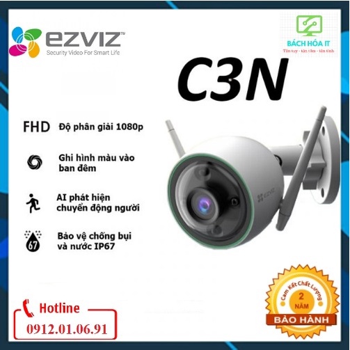 Cameras & Flycam > Camera giám sát > Camera giám sát kết nối internet || Camera Wifi ngoài trời EZVIZ CS-C3N (EZVIZ C3N) 1080p, có màu ban đêm, chính hãng, bảo hảnh 24 thángCòn hàng